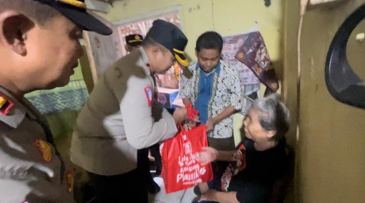 Kapolsek Grogol Petamburan dan anggotanya datang tak hanya untuk bersilaturahmi, tetapi juga untuk memberikan bantuan berupa sembako kepada Ibu Rasmi.