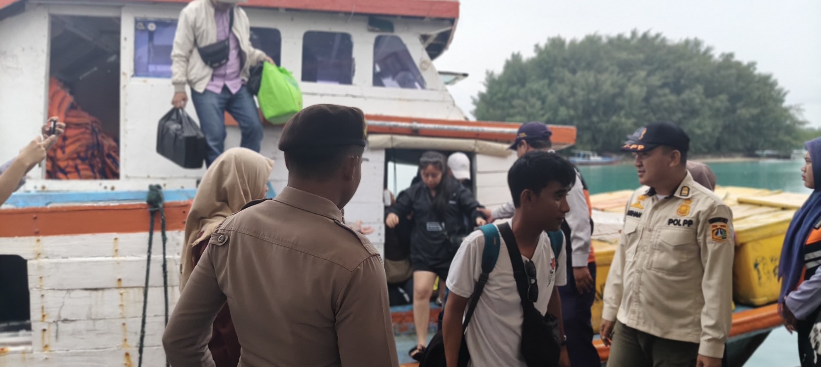 Aiptu Untung Suryono bersama personel Polsek Kepulauan Seribu Utara sigap membantu wisatawan, terutama lansia dan anak-anak, saat turun dari kapal. Selain itu, mereka juga memastikan barang bawaan penumpang dalam kondisi aman serta tidak membahayakan keselamatan di dermaga.