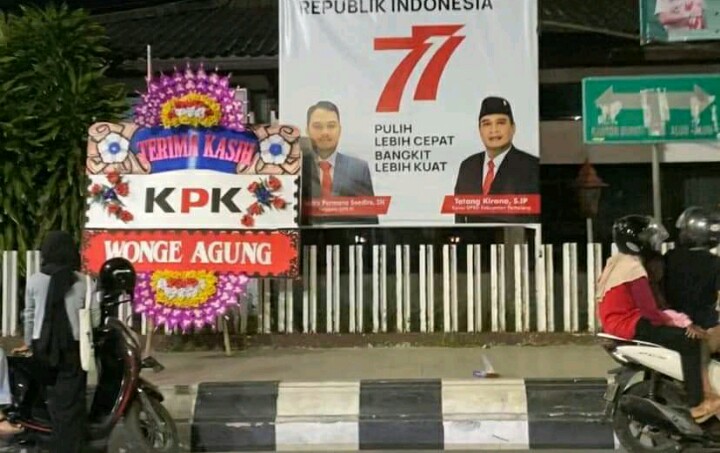Karangan Bunga “Terimakasih KPK” Terpampang Dijalan Utama Menuju Pendopo Kabupaten Pemalang