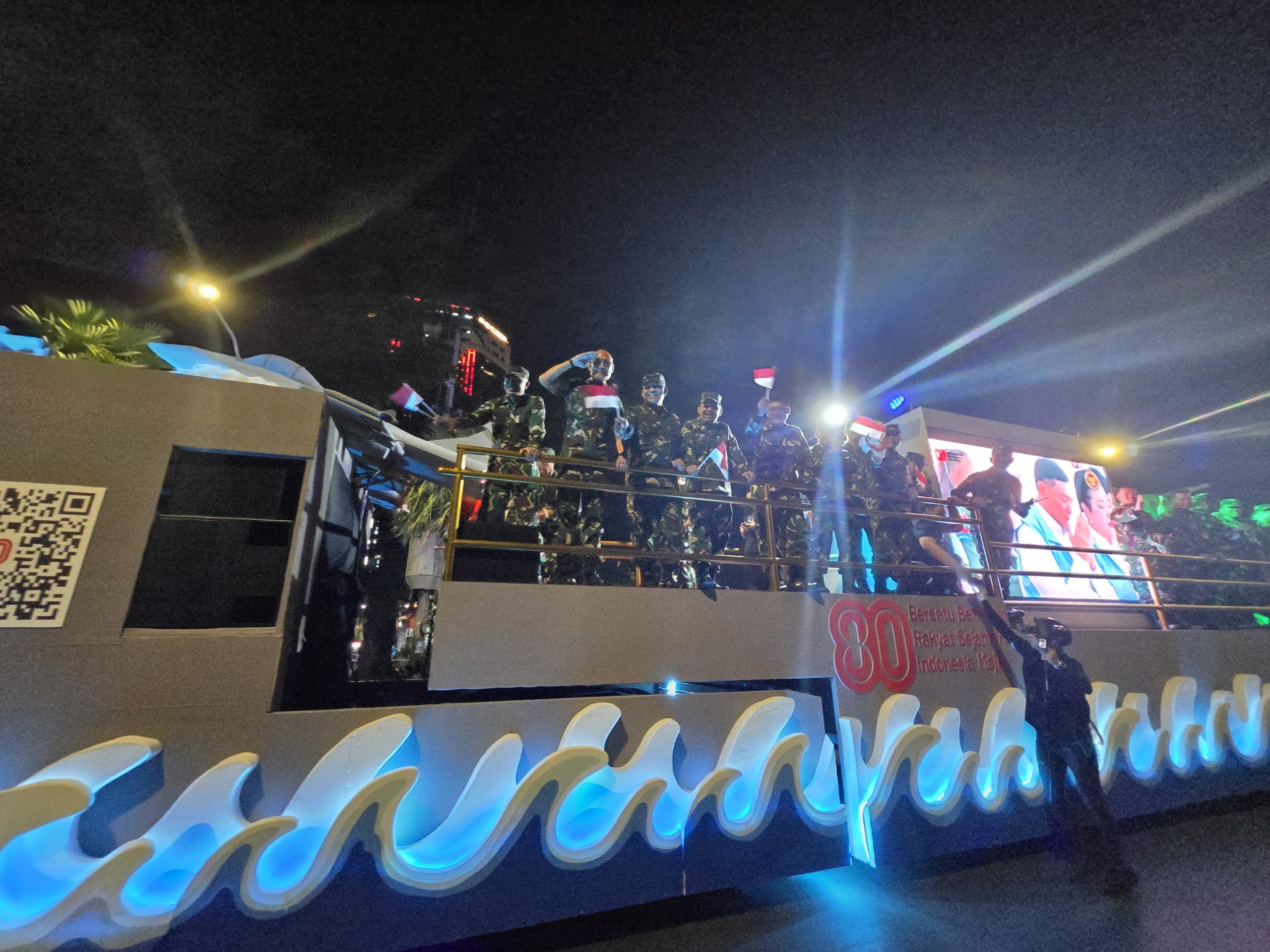 Karnaval menjadi daya tarik utama, di mana berbagai kementerian dan lembaga negara menampilkan kreativitas terbaiknya. Kemhan dan TNI tampil memukau dengan mobil karnaval nomor urut 28 yang berbentuk kapal perang modern dengan ornamen gelombang laut berlampu LED, melambangkan kekuatan maritim Indonesia.