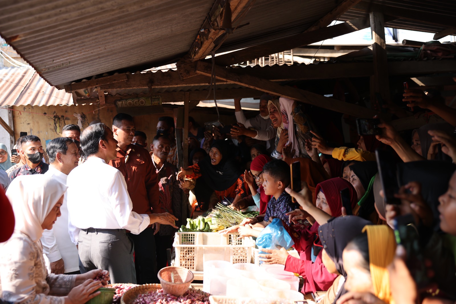 Kehadiran Prabowo Subianto ke Pasar Grogolan untuk mendampingi Presiden Joko Widodo blusukan. Keduanya menyambangi pasar tersebut usai meresmikan Muktamar Sufi Internasional 2023 di Sahid International Convention Center. (ris)
