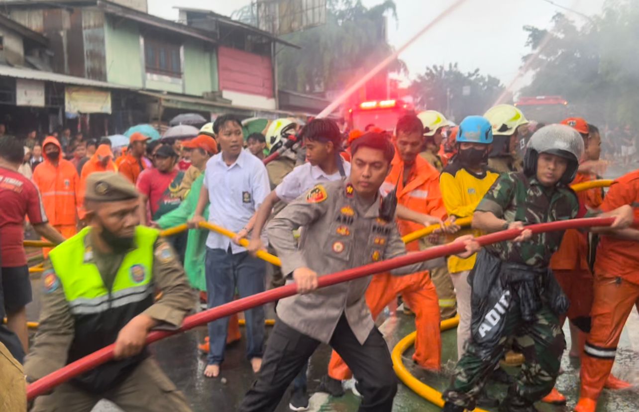 Mereka saling berkoordinasi dengan penuh kekompakan untuk memastikan keselamatan warga dan meminimalisir kerugian akibat kebakaran.