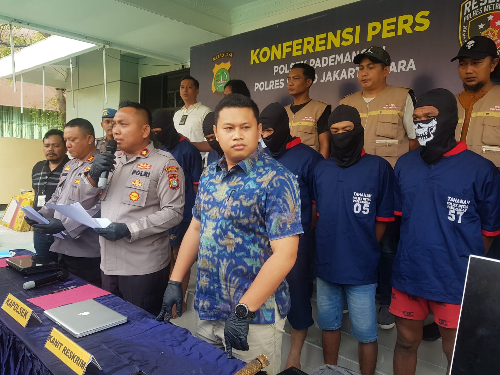 “Kami berhasil mengamankan kelompok pertama berjumlah 2 orang di sekitar Jalan Martadinata berkat Polisi RW yang sedang patroli. Mereka melihat ciri-ciri (pelaku) yang dimaksud lalu berkomunikasi dengan reskrim,” jelas perwira menengah Polsek Pademangan.