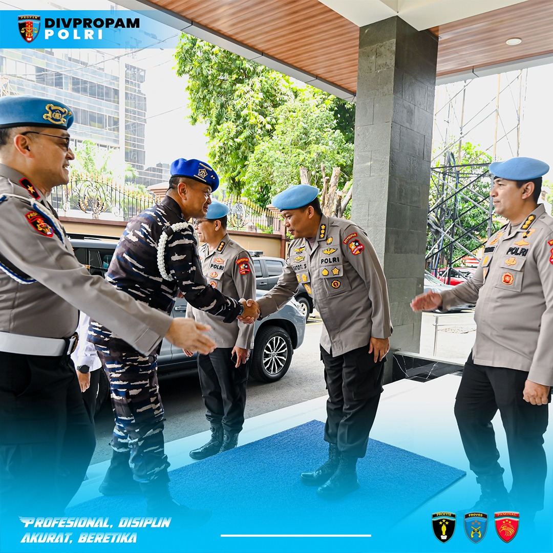 KS, JAKARTA – Divisi Profesi dan Pengamanan (Divpropam) Polri menerima kunjungan silaturahmi dari Komandan Pusat Polisi Militer Angkatan Laut (Danpuspomal) Mayjen TNI (Mar) Harry Indarto, S.E., M.M. beserta rombongan, dalam suasana penuh keakraban dan kebersamaan.