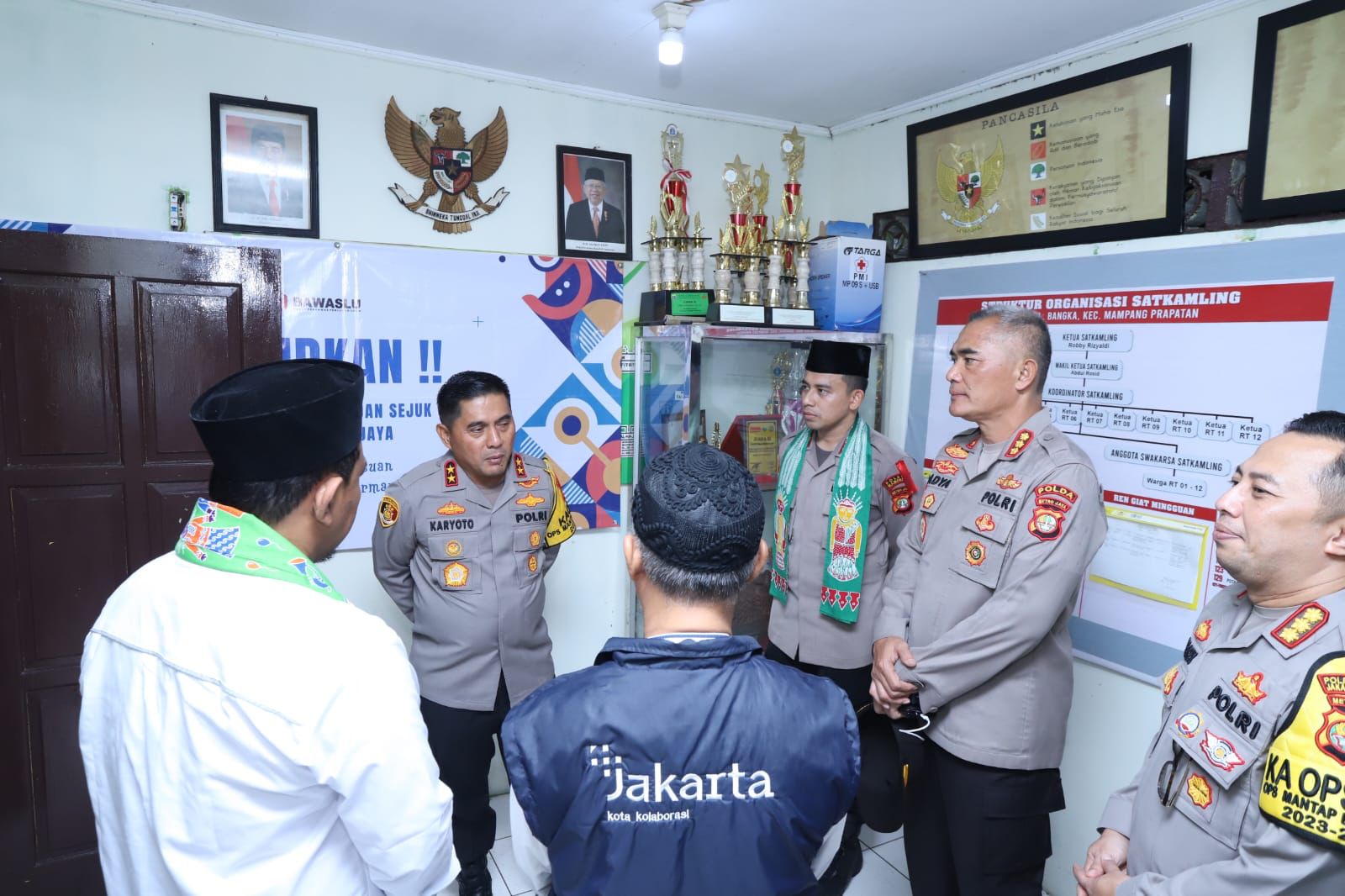 KS, JAKARTA – Kapolda Metro Jaya Irjen Karyoto didampingi Dirbinmas Polda Metro Jaya Kombes Badya Wijaya melaksanakan kegiatan kunjungan, asistensi dan pengecekan satkamling di Pos Satkamling RW 03 Kelurahan Bangka, Mampang Prapatan, Jakarta Selatan. Karyoto memberikan arahan kepada warga untuk mencegah kejahatan.