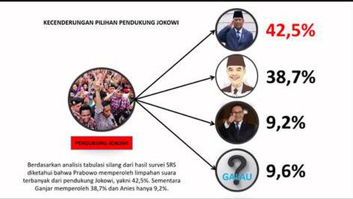 Survei ini juga menunjukkan bahwa basis suara pemilih Prabowo pada Pilpres 2019 semakin solid untuk kembali mendukung ketua umum Gerindra tersebut pada Pilpres 2024.