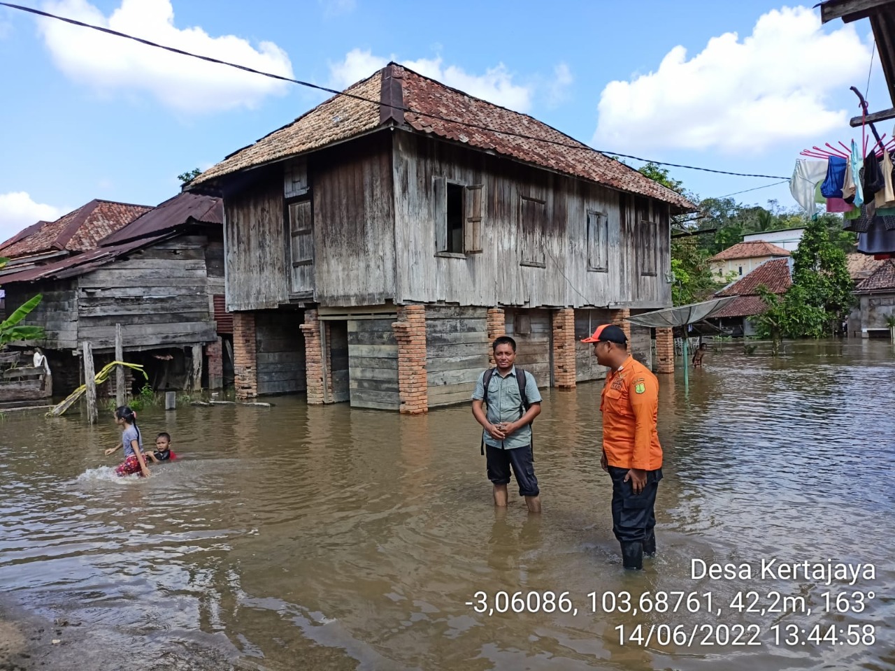 Kondisi hari ini (15/6/2022) dilaporkan ketinggian banjir masih menggenangi akses jalan sekitar 50 sentimeter. Sedangkan untuk ketinggian air dipemukiman warga sekitar 30 sentimeter. Perkembangan kondisi ini akan terus dilakukan pemantauan secara berkala dengan berkoordinasi dengan pemerintah setempat.