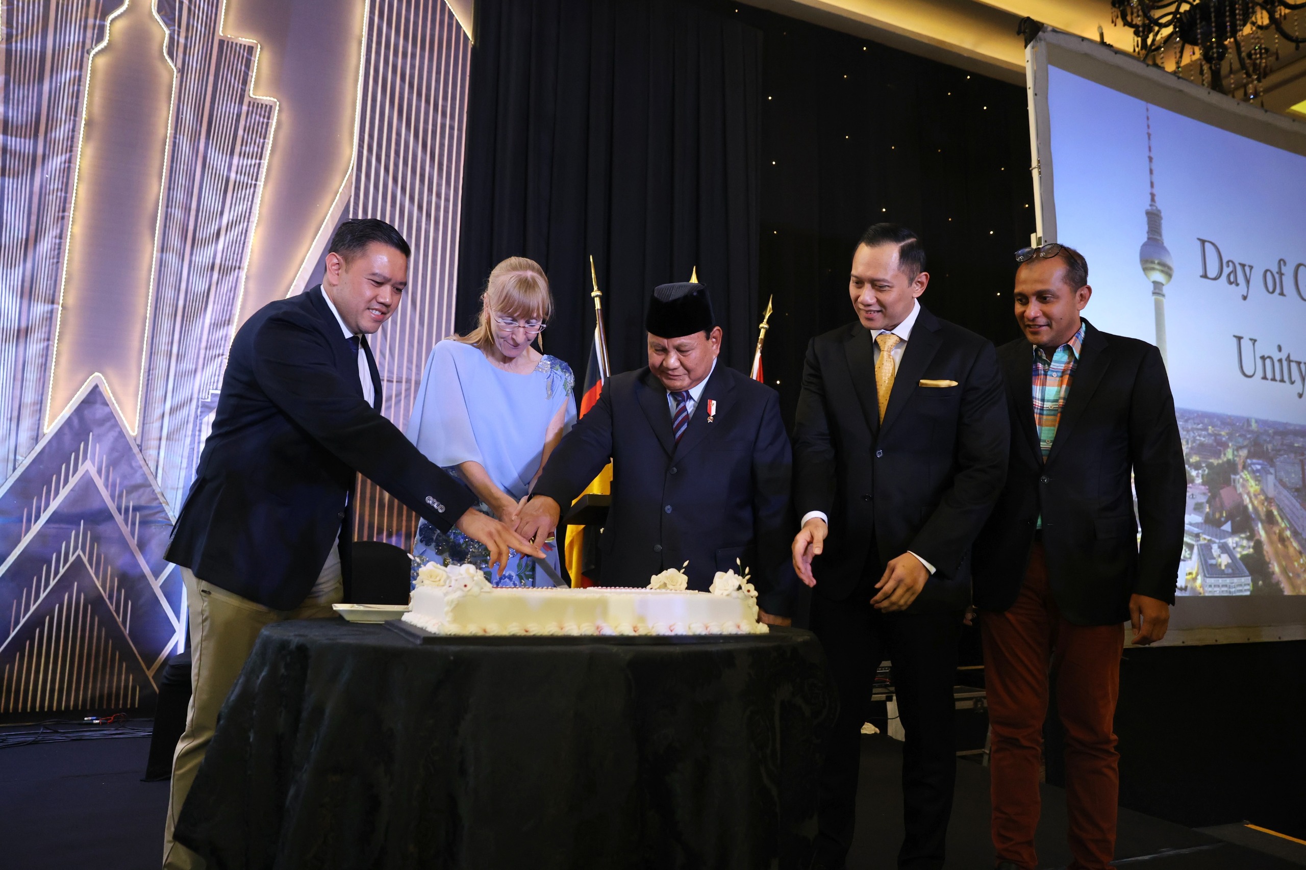 “Atas nama pemerintah dan seluruh rakyat Indonesia, saya ucapkan selamat Hari Nasional Jerman kepada pemerintah Republik Federal Jerman serta seluruh Rakyat Jerman pada hari nasional ini,” ujar Menhan Prabowo dalam sambutannya.