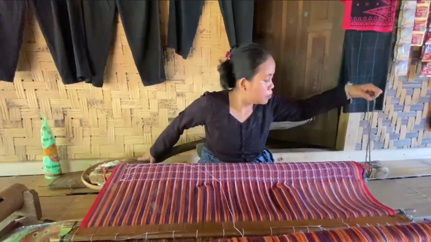 Di perkampungan adat Baduy, yang berada di Desa Kanekes, Kecamatan Leuwidamar, Kabupaten Lebak, Banten, aktivitas menenun masih menjadi pemandangan sehari-hari. Di rumah panggung sederhana dengan konstruksi bambu khas Baduy, perempuan-perempuan duduk bersila di bale-bale, telaten merajut benang menjadi kain penuh makna.