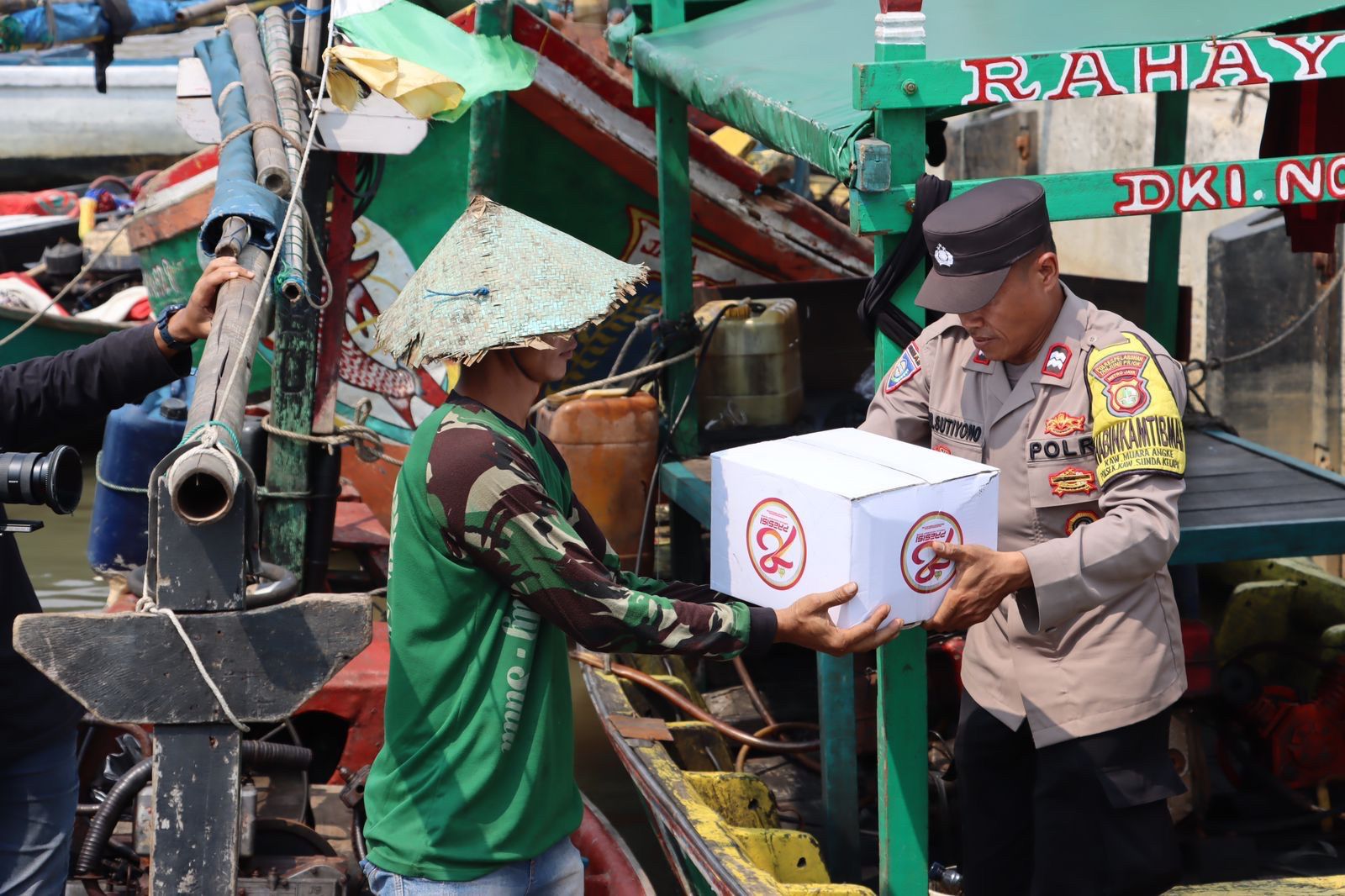 200 paket sembako dari Mabes Polri di berikan kepada warga nelayan melalui Kasubag Renfaskon Bagrenlog Rojianstra Slog Polri AKBP Nurohman Nul Hakim,S.I.K didampingi Kabaglog Polres Pelabuhan Tanjung Priok Kompol William Nittalesy dan Wakapolsek Sunda Kelapa AKP Yudi Hermawan, Rabu (19/6/2024).