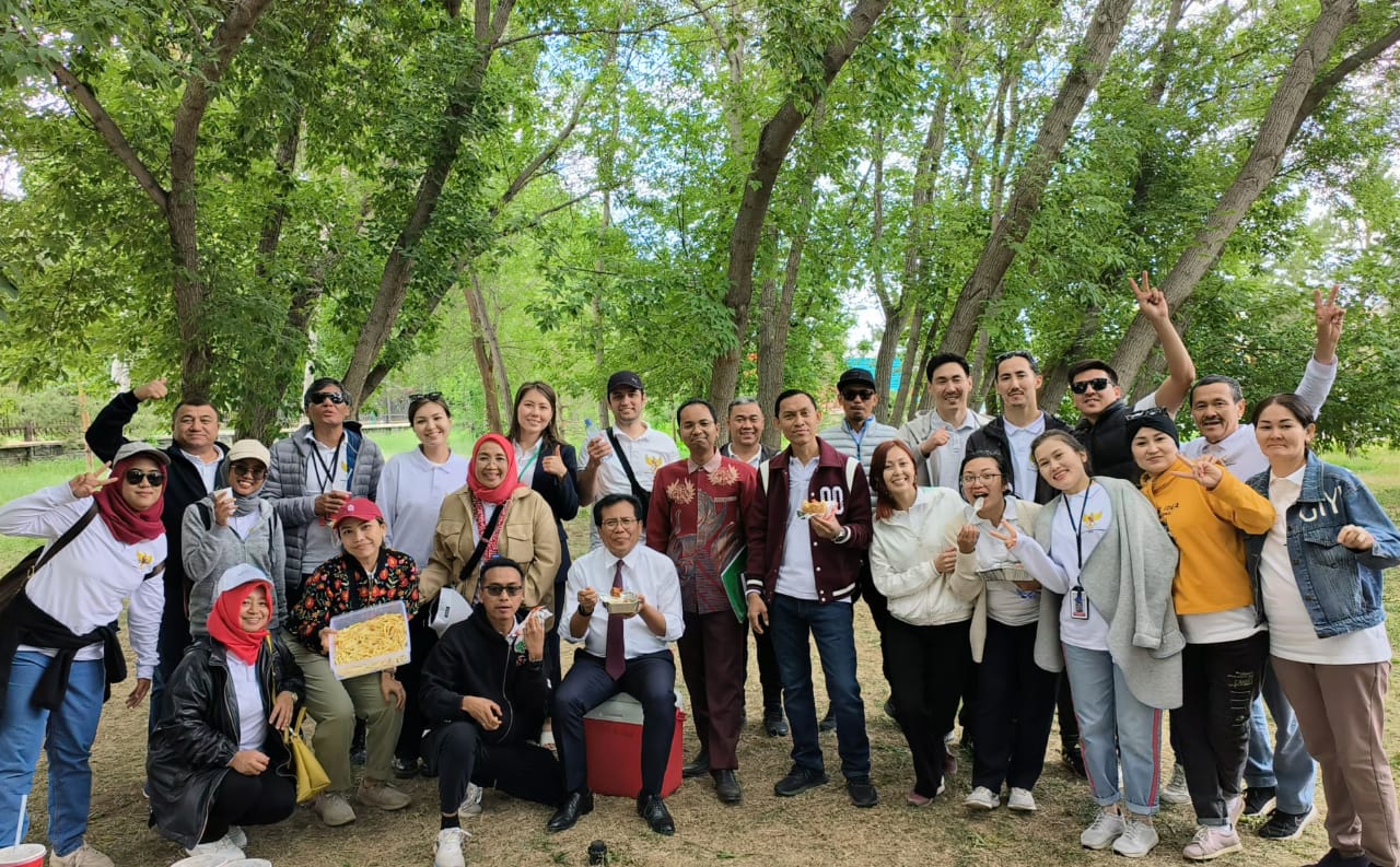 KS, ASTANA – Keseruan acara menyambut HUT RI ke-78 tahun 2023 terlihat dari antusiasme para peserta yang hadir, baik Tim KBRI Astana, Warga Negara Indonesia (WNI) serta Friends of Indonesia di Jetisu Park, Astana Kamis (22/6).