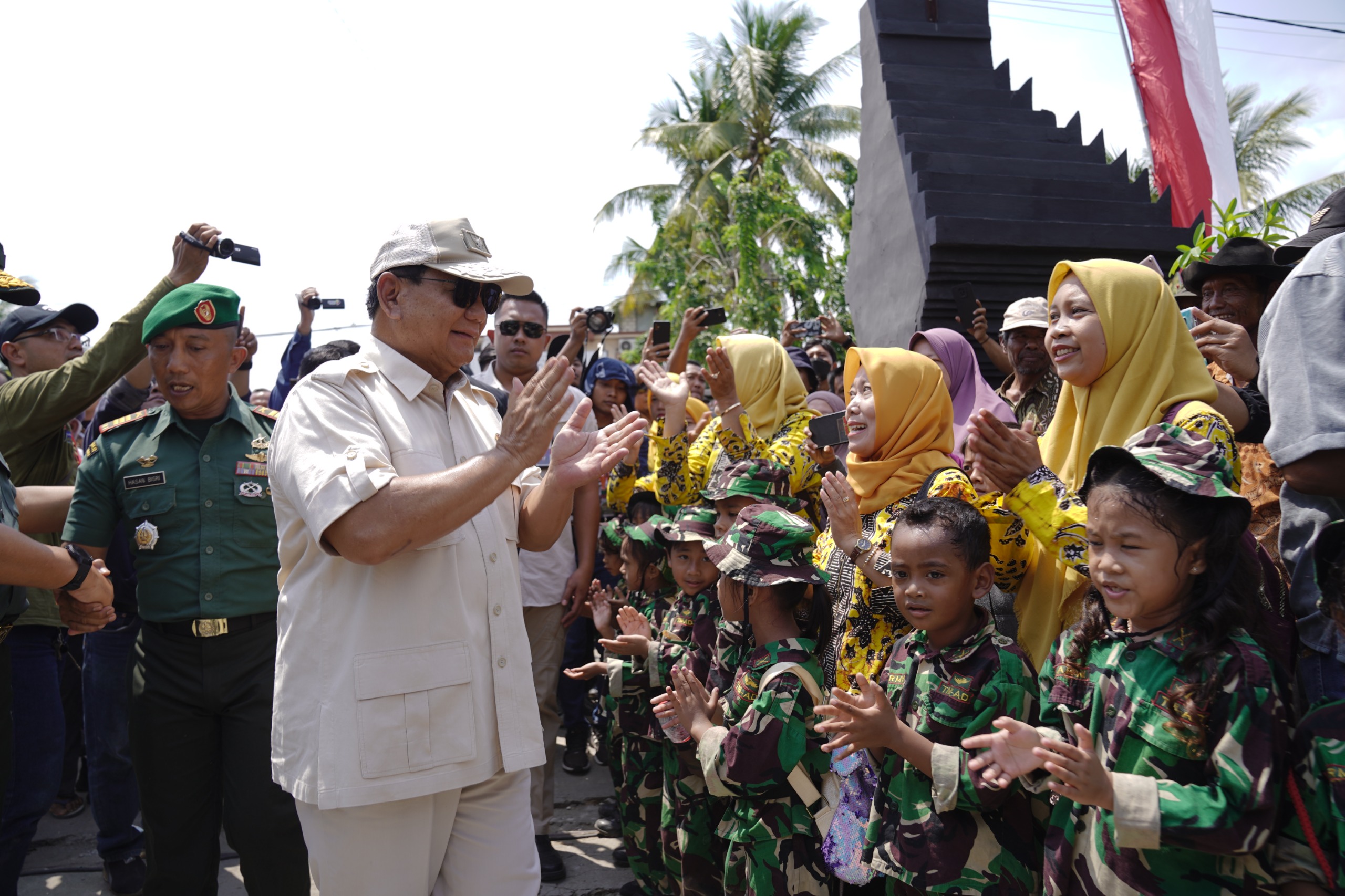 Prabowo yang melihat ini langsung berdecak kagum. Ia berhenti menyalami satu persatu anak-anak tersebut, mengelus kepala mereka dan tersenyum.