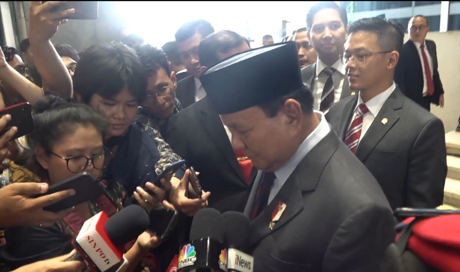 Mulanya awak media berupaya menghadang Prabowo untuk meminta komentar. Namun, ia bergeming dan terus berjalan berjalan ke arah Nusantara III.
