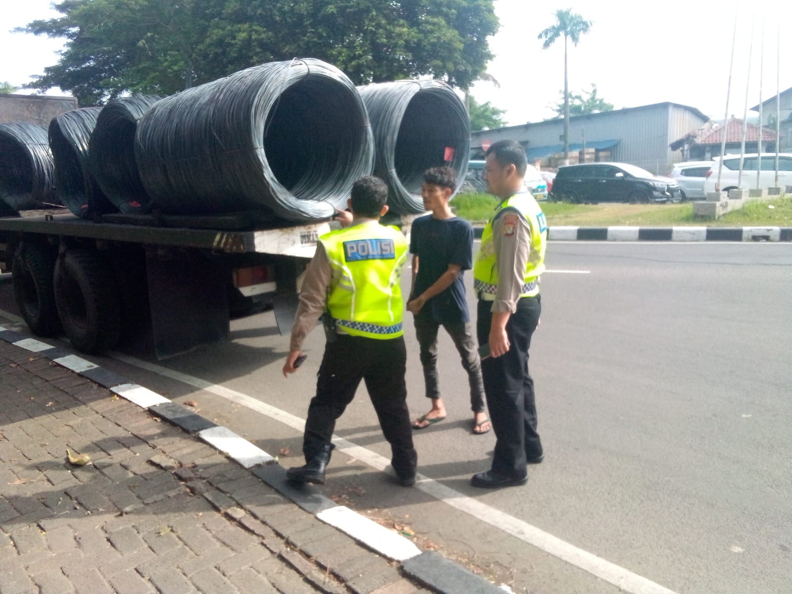 Evakuasi muatan yang menghalangi jalan, dilakukan memindahkan besi gulungan.