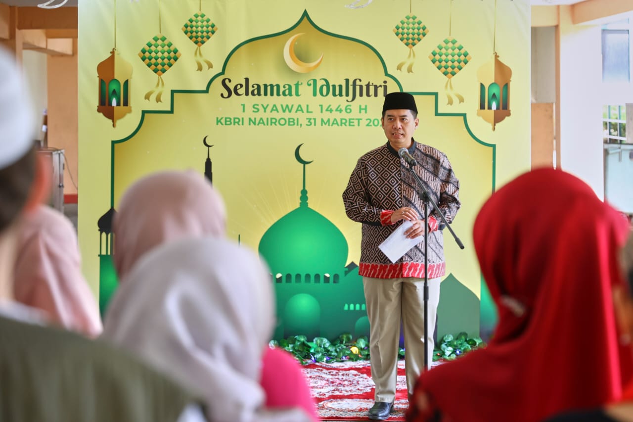 Kuasa Usaha Ad Interim (KUAI) KBRI Nairobi, Danny Rahdiansyah, menyampaikan bahwa Hari Raya Idulfitri adalah hari di mana manusia kembali pada fitrahnya yang suci dan bersih. “Nilai-nilai Idulfitri ini membawa semua pada keutamaan, perdamaian, dan kesejahteraan bagi bangsa Indonesia yang pada tahap ini telah memasuki babak baru pembangunan nasional yang perlu didukung bersama oleh seluruh elemen bangsa yang bersatu dan damai”, ujarnya.