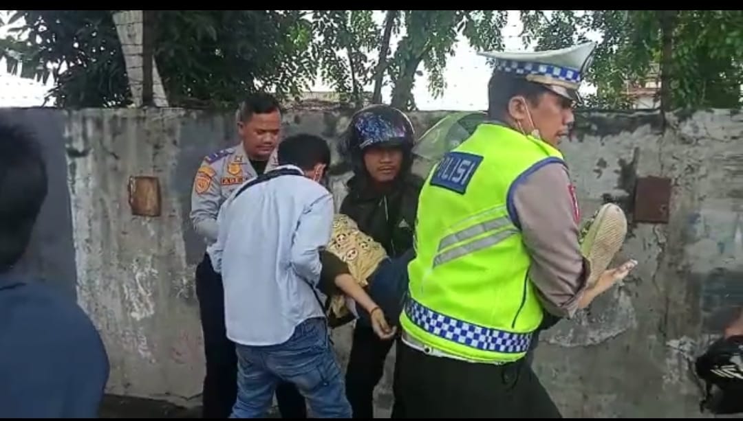 Melihat ada korban pengendara motor, dengan sigap, petugas Satlantas Polres Jakarta Barat, yang sedang mobile patroli langsung menolong seorang wanita yang menjadi korban kecelakaan.