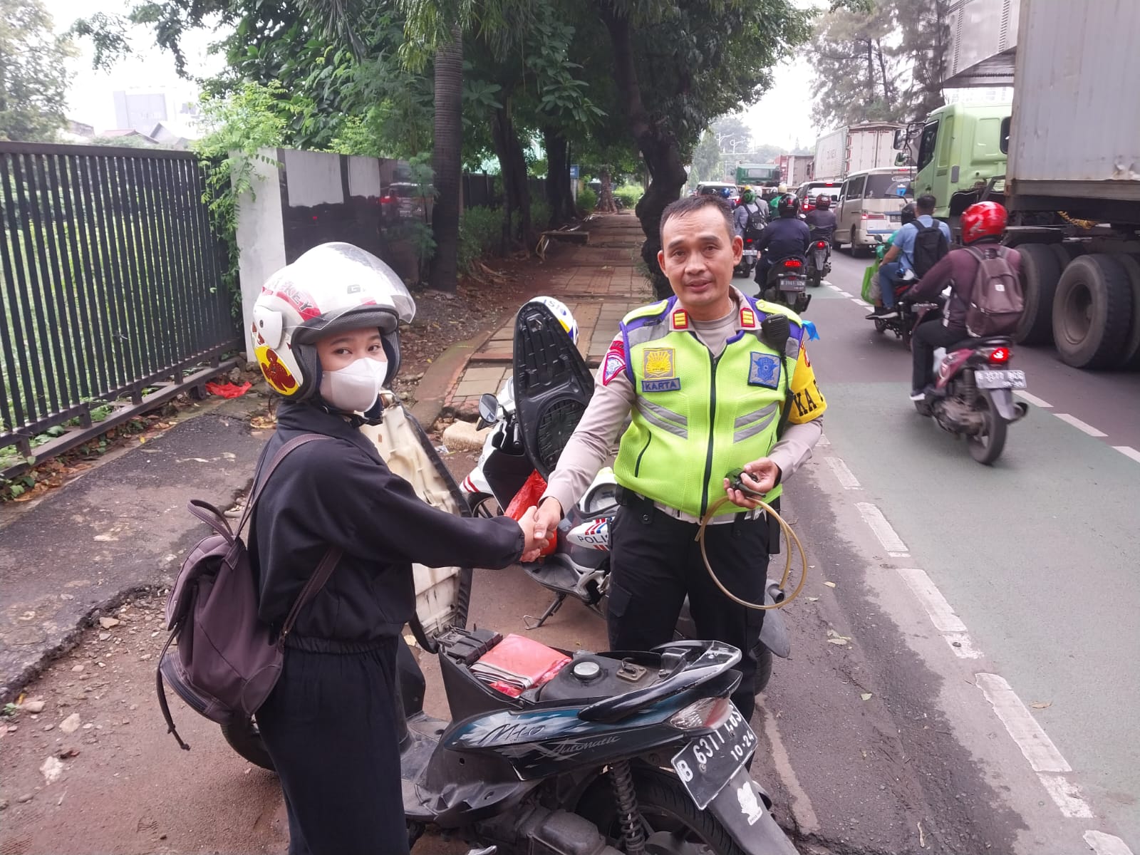 Saat melintas di jalan S.Parman, Jakarta Barat, perwira menengah Satlantas Polres Jakarta Barat ini, melihat seorang wanita tengah mentoring sepeda motornya, karena kehabisan bahan bakar minyak (BBM).