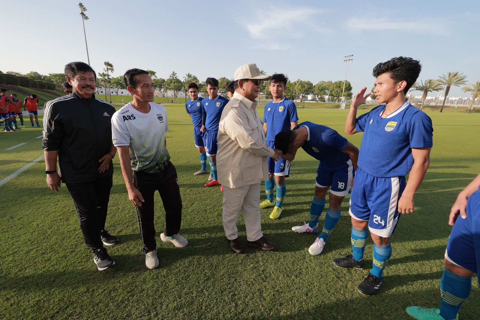 Pemandangan ini terjadi saat Prabowo mengunjungi tim U-17 Persib yang dikirimnya berlatih di Aspire Academy, Qatar pada Rabu (31/5). Anak muda antusias bersalaman dan berswafoto sesampainya Prabowo di lokasi tersebut.