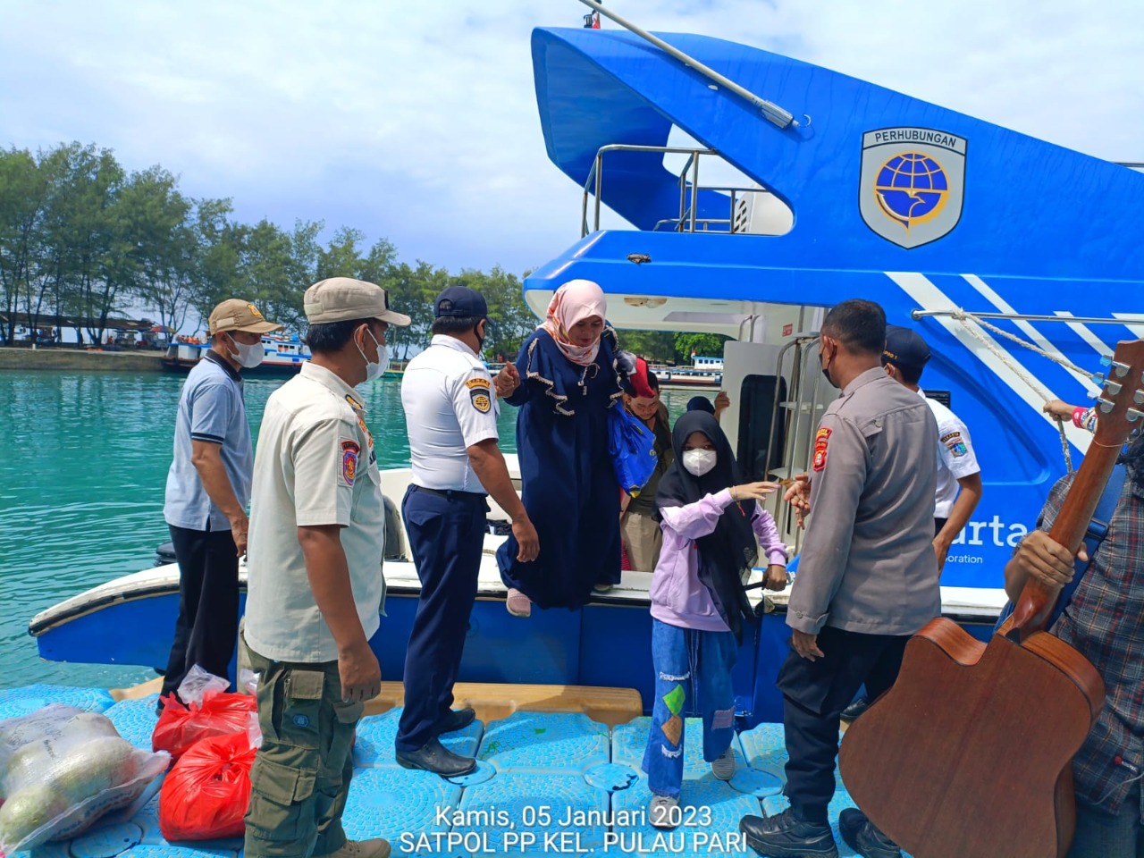 Dalam giat rutin pengamanan dermaga yang dilaksanakan Kapolsubsektor Pulau Pari Polsek Kepulauan Seribu Utara Aipda Abdul Majid laksanakan giat pengamanan dermaga, dalam giat pengamanan Jajaran Polsek Kepulauan Seribu Selatan pantau kedatangan kapal dan membantu wisatawan yang turun dari kapal.