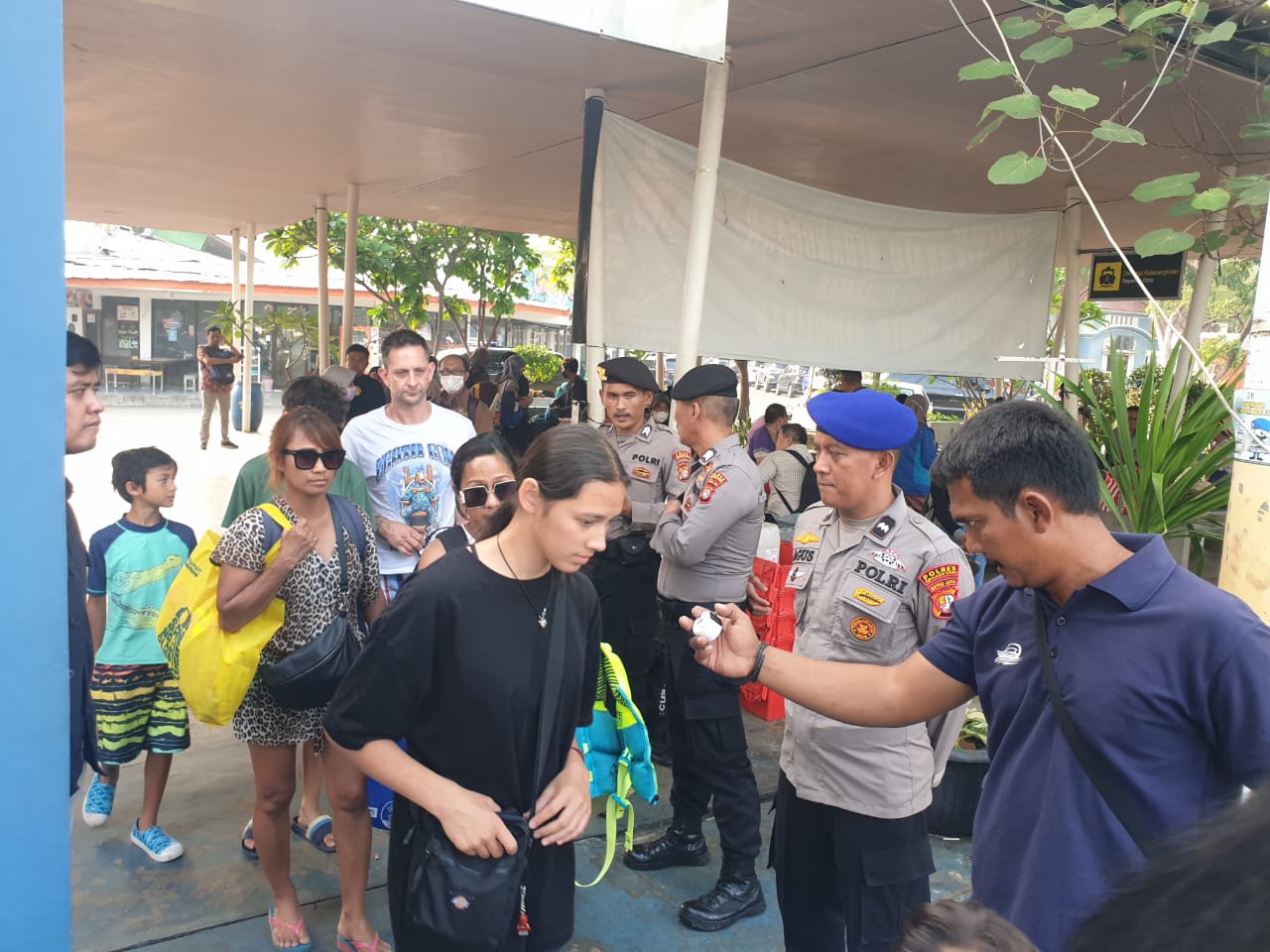 Pemeriksaan dilakukan untuk memastikan bahwa warga dan wisatawan telah menggunakan alat keselamatan dengan benar sebelum memasuki kapal.