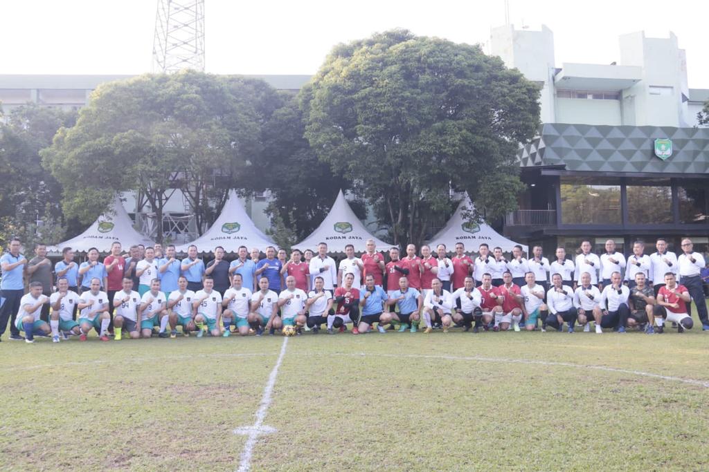 Olahraga bersama kali ini Kodam Jaya menggelar pertandingan sepakbola. Dalam satu tim terdiri dari gabungan TNI dan Polri.