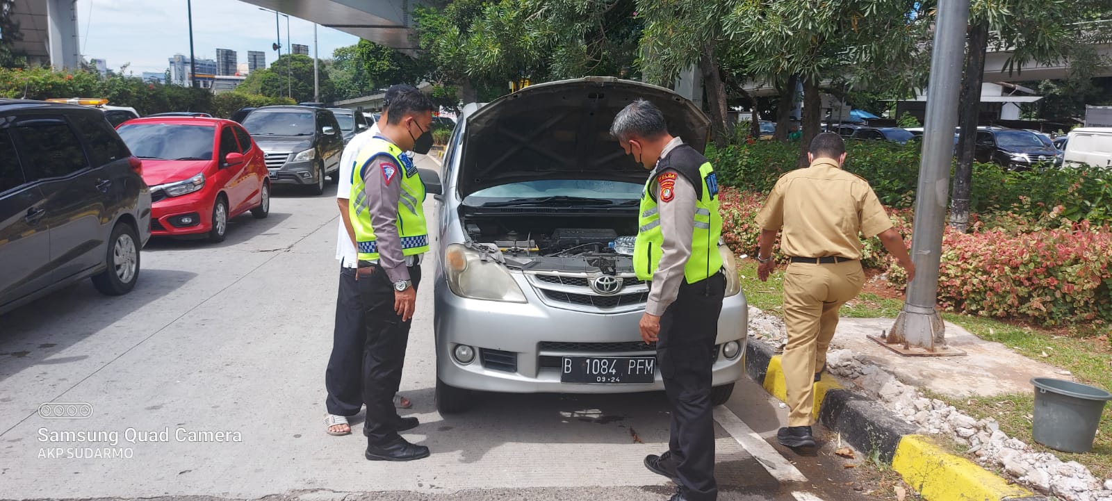 KS, JAKARTA – Aksi Polri sebagai pengayom dan pelayan masyarakat kembali ditunjukkan oleh Personel Satlantas Jakarta Barat, terlihat sebuah kendaraan mini bus B 1084 PFM mengalami mogok akibat overhead pada mesin kendaraan.
