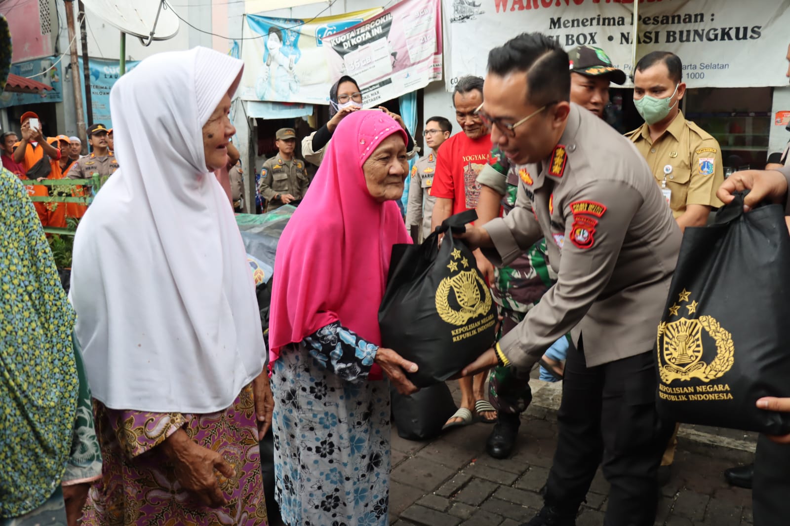 Di tempat terpisah, Polres Metro Jakarta Timur bagikan 1000 Paket bansos Kapolri kepada warga di daerah Jatinegara dan Matraman