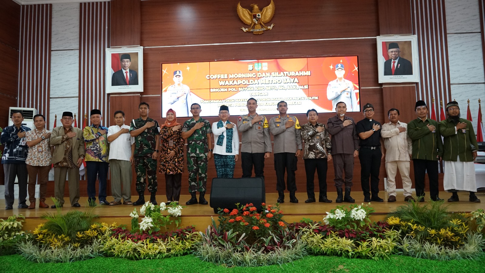 KS, JAKARTA – Polres Metro Bekasi menggelar Coffee Morning dan silaturahmi dengan Forkopimda, Tokoh Masyarakat, Tokoh Agama dan Partai Politik peserta Pemilu 2024 Kabupaten Bekasi di Gedung Promoter Polres Metro Bekasi, Jumat (20/10/3023).