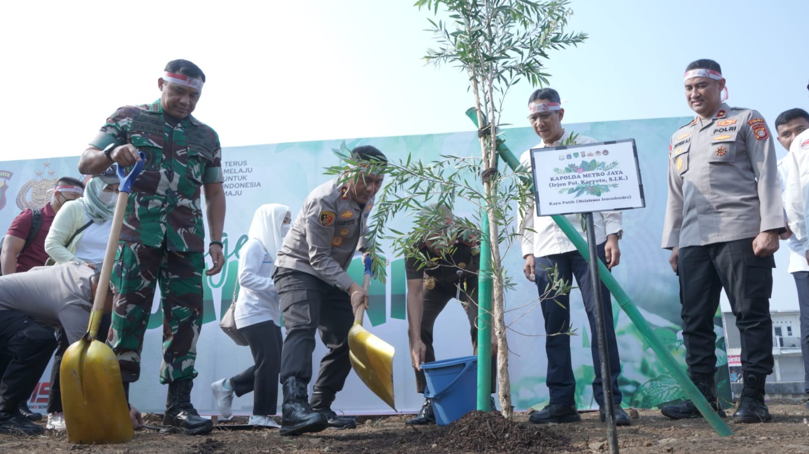 KS, JAKARTA – Aksi nyata gerakan nasional mensyukuri kemerdekaan bangsa dalam rangka memperingati HUT Republik Indonesia yang ke-78, Polda Metro Jaya mengambil langkah proaktif dalam menjaga lingkungan dan bumi yang lebih baik dengan turut serta dalam gerakan penanaman 100.000 pohon, di Mapolsek Kalideres Jakarta Barat serta wilayah Polres jajaran Polda Metro Jaya, Rabu (23/8/2023).