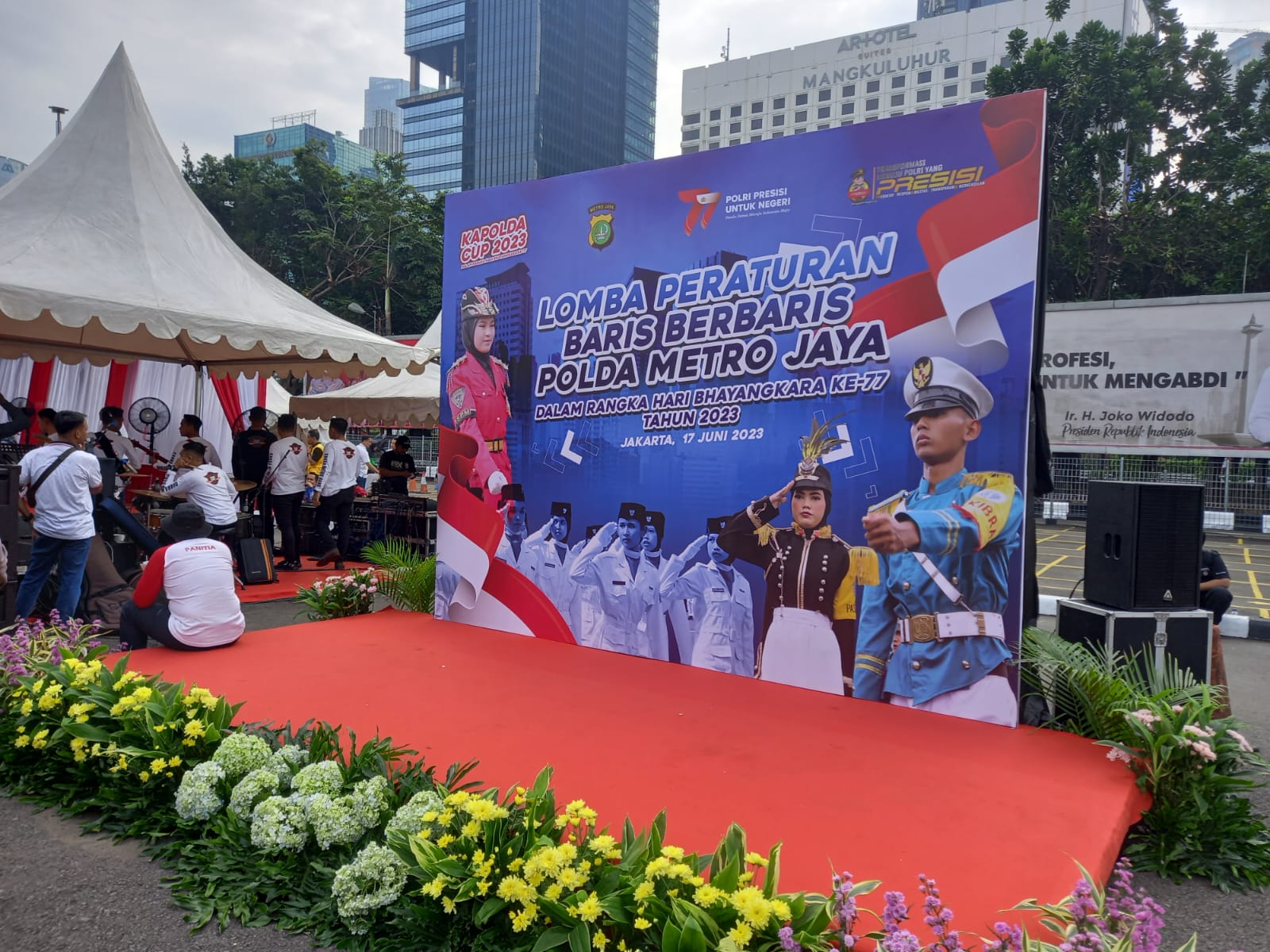 KS, JAKARTA – Dalam rangka memeriahkan Hari Ulang Tahun Bhayangkara Ke-77, Ditlantas Polda Metro Jaya mengadakan Lomba Peraturan baris berbaris Kapolda Cup di Lapangan Presisi Polda Metro Jaya, Sabtu (17/6/2023).