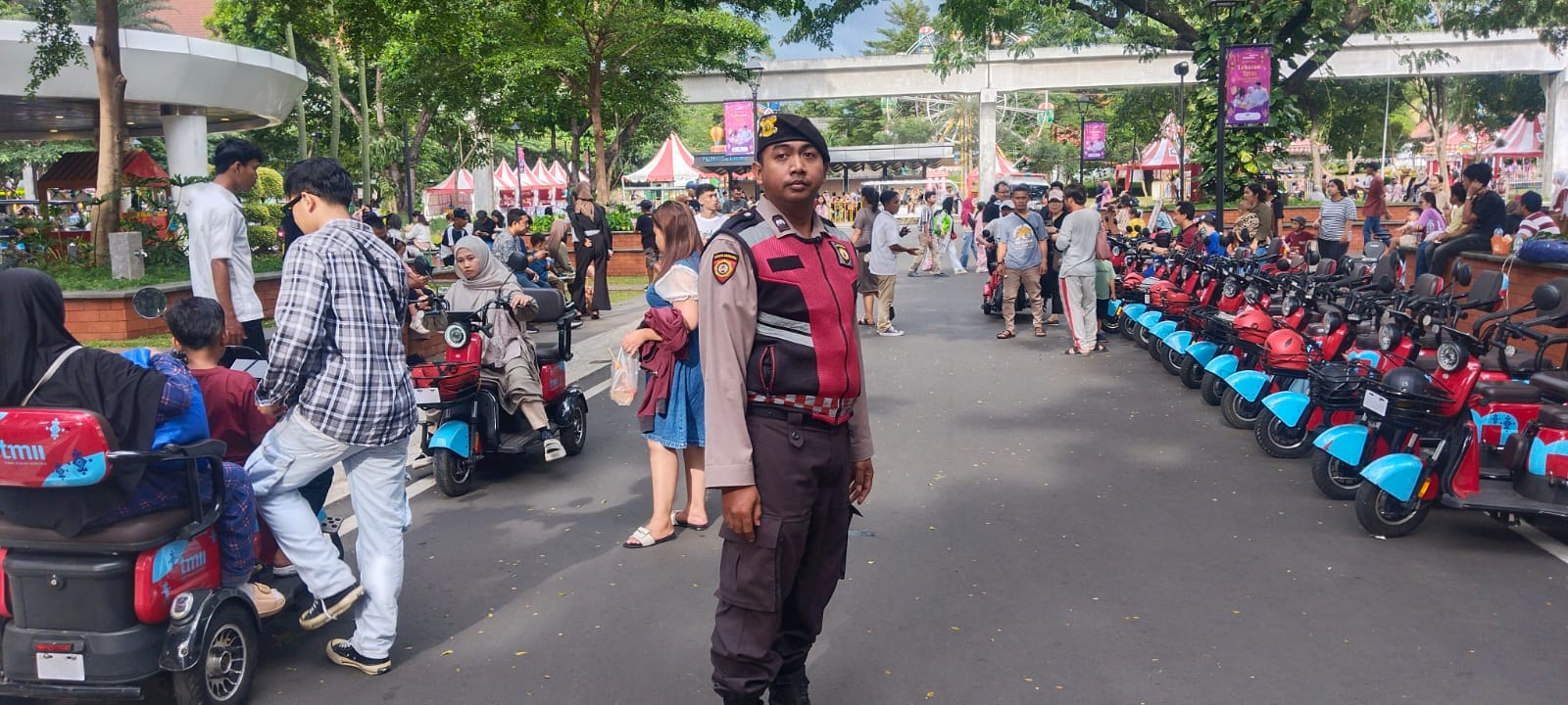 Meski cuaca sempat mendung pada sore hari, pihak Kepolisian tetap waspada dan memastikan seluruh pengunjung dapat menikmati hari raya dengan aman.