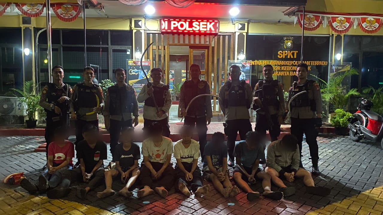 Kali ini, 8 (delapan) remaja yang diduga akan melakukan aksi tawuran di Komplek Pertambangan, Kebon Jeruk, Jakarta Barat, diamankan oleh polisi pada Sabtu, 3 Agustus 2024, sekitar pukul 05.00 WIB.