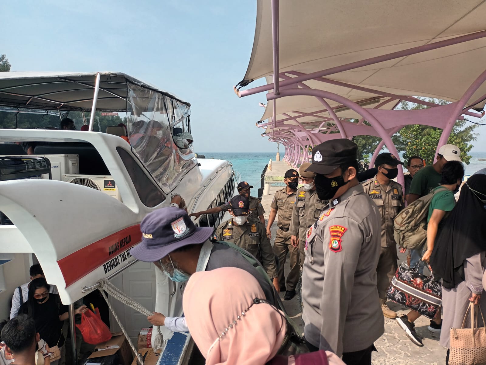 Dalam giatnya, anggota polsubsektor berikan pengamanan dermaga bersinergi dengan bhabinkamtibmas Pulau Tidung, Satpol PP dan anggota Dinas Perhubungan.