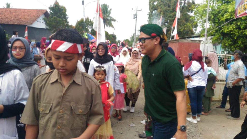 KS,PEMALANG – Anggota DPRD Kabupaten Pemalang Fahmi Hakim memberikan sambutan sekaligus motivasi kepada para peserta gelar seni dan Karnaval Budaya pada HUT Kemerdekaan RI ke – 77, Minggu ( 21/8/2022 ).