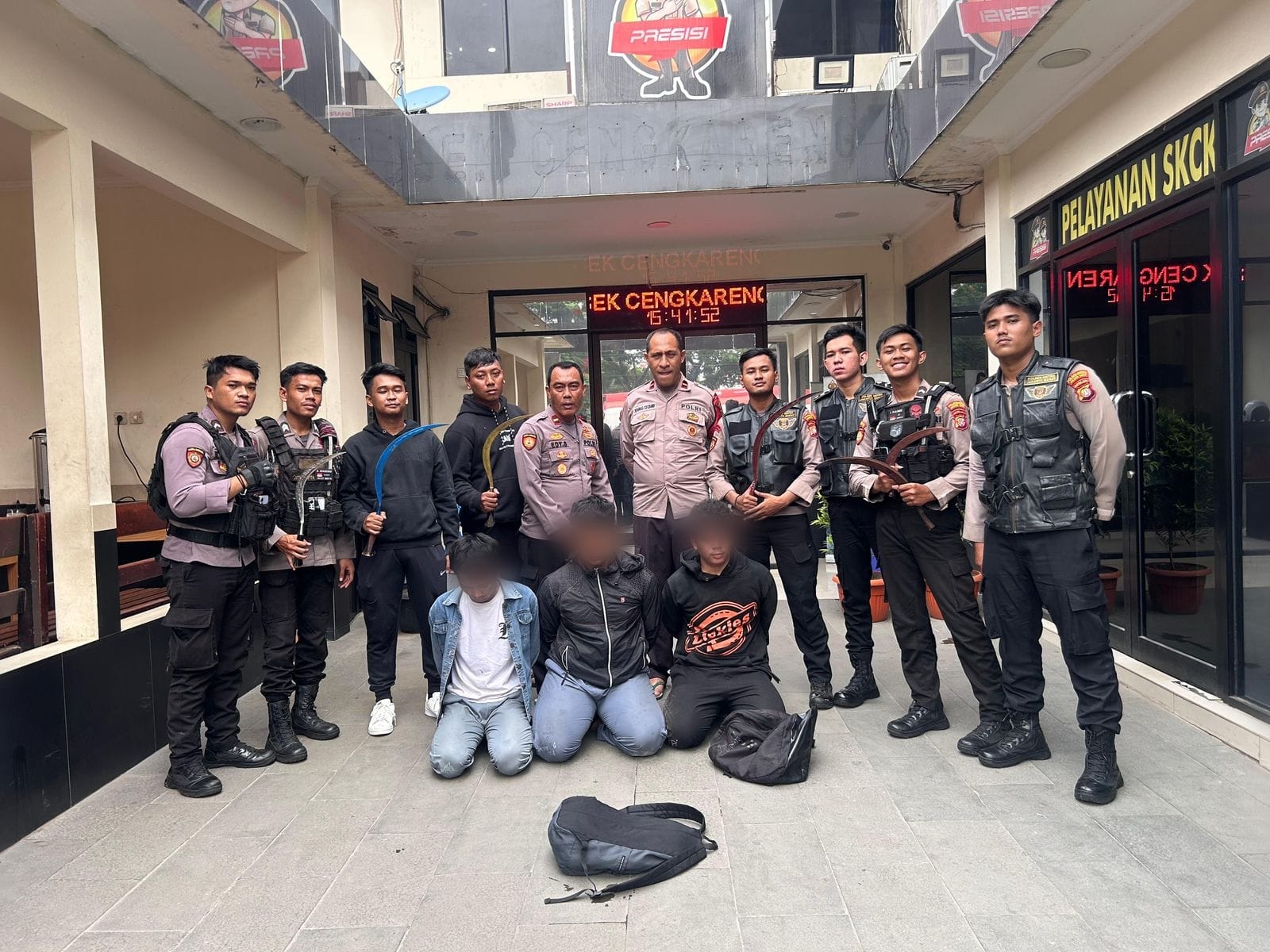 Semua pelajar beserta barang bukti kemudian dibawa ke Polsek Cengkareng untuk proses lebih lanjut.