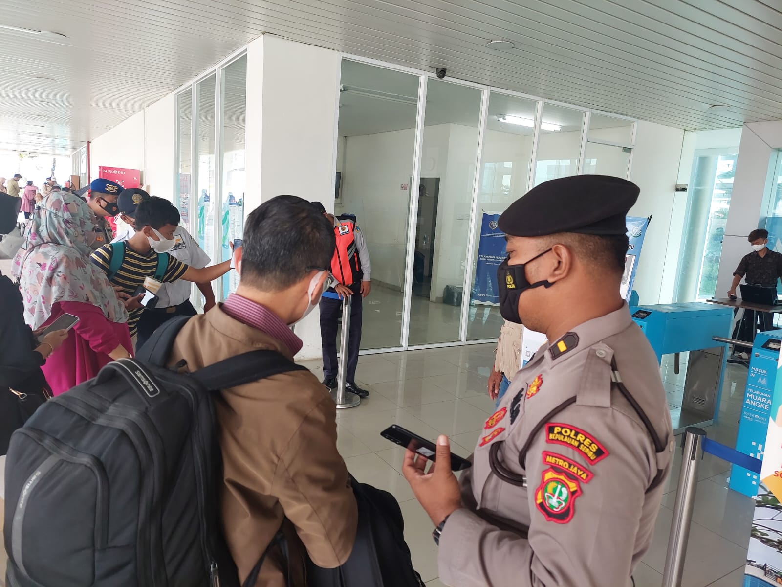 KS, JAKARTA – Penempatan personil rutin dilaksanakan setiap hari oleh Polres Kepualuan Seribu di dermaga keberangkatan Muara Angke, Kali Adem Jakarta Utara.