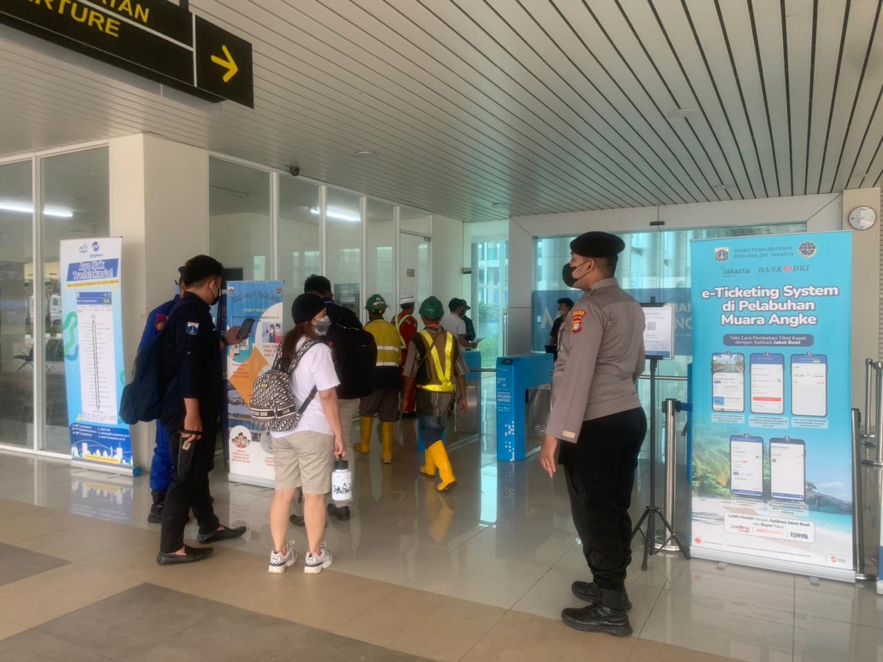 KS, JAKARTA – Penempatan personil rutin dilaksanakan setiap hari oleh Polres Kepualuan Seribu di dermaga keberangkatan Muara Angke, Kali Adem Jakarta Utara.