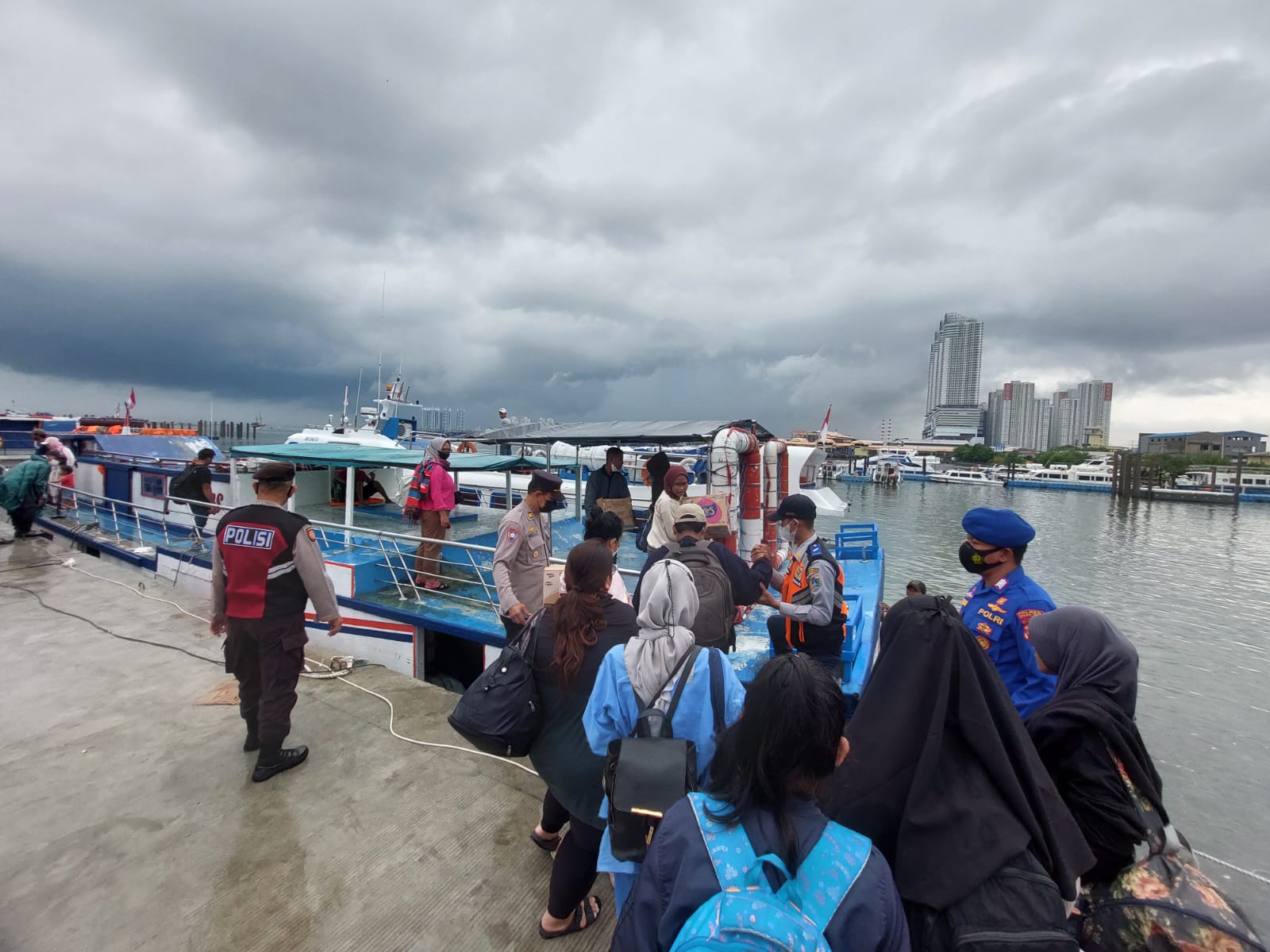 KS, JAKARTA – Penempatan personil rutin dilaksanakan setiap hari oleh Polres Kepualuan Seribu di dermaga keberangkatan Muara Angke, Kali Adem Jakarta Utara.