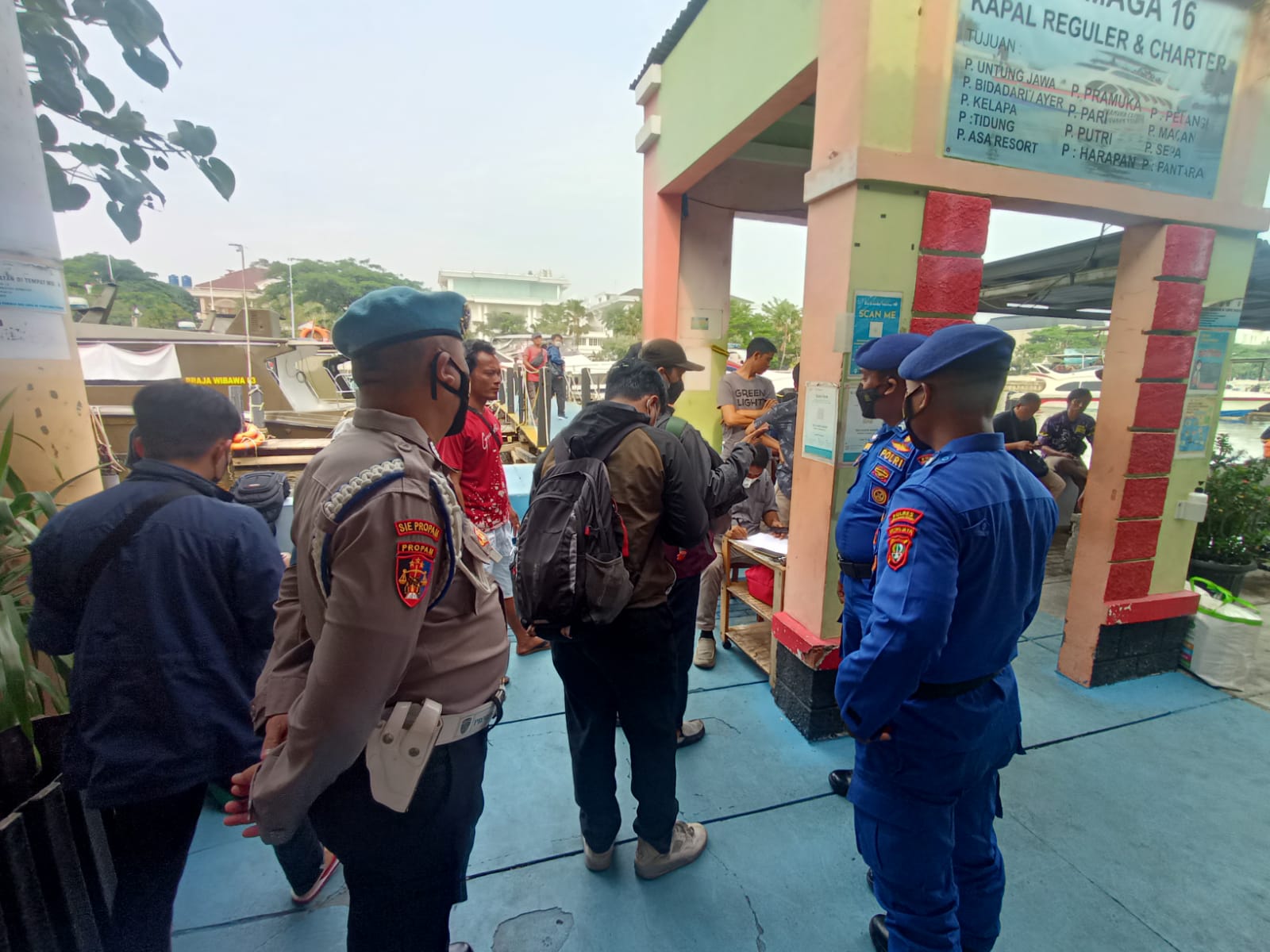 KS, JAKARTA – Penempatan personil rutin dilaksanakan setiap hari oleh Polres Kepualuan Seribu di dermaga keberangkatan Muara Angke, Kali Adem Jakarta Utara.