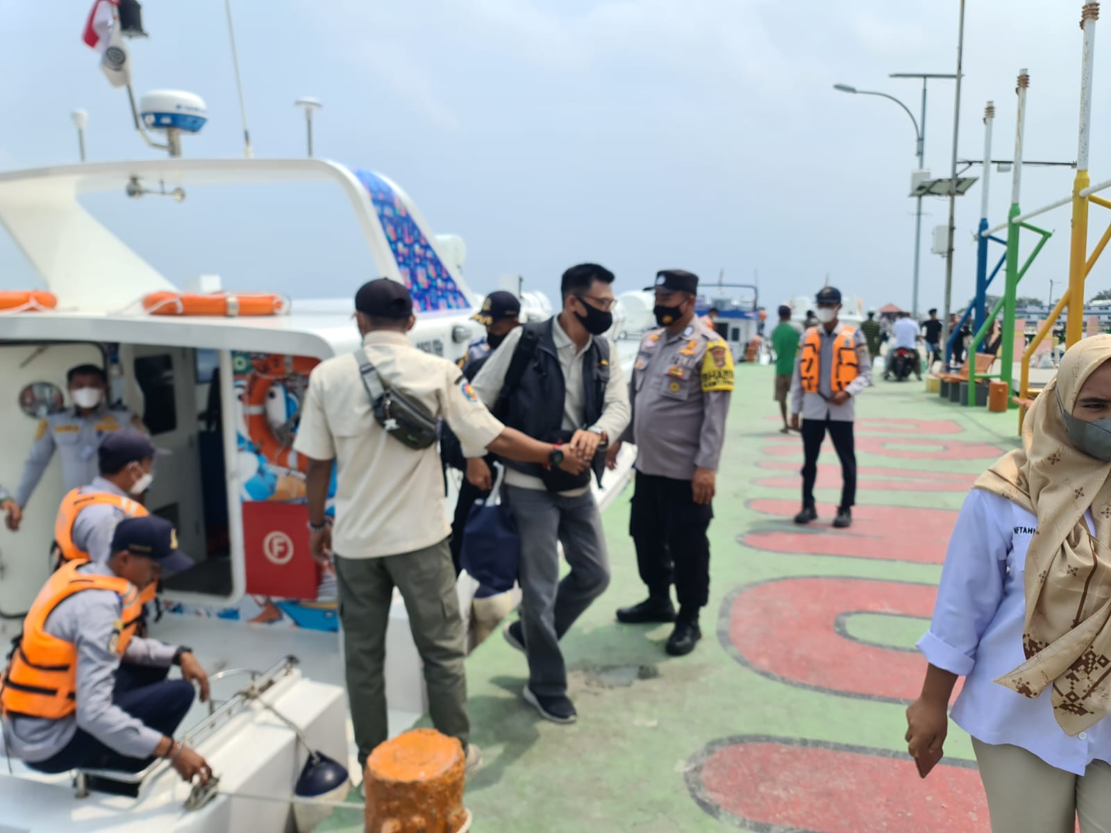 KS, JAKARTA – Pengamanan di keberangkatan, pengamanan juga dilaksanakan di dermaga keberangkatan oleh jajaran Polres Kepulauan Seribu melalui jajaran Polsek Kepulauan Seribu Selatan dan Polsek Kepulauan Seribu Utara, Minggu (06/11/2022).