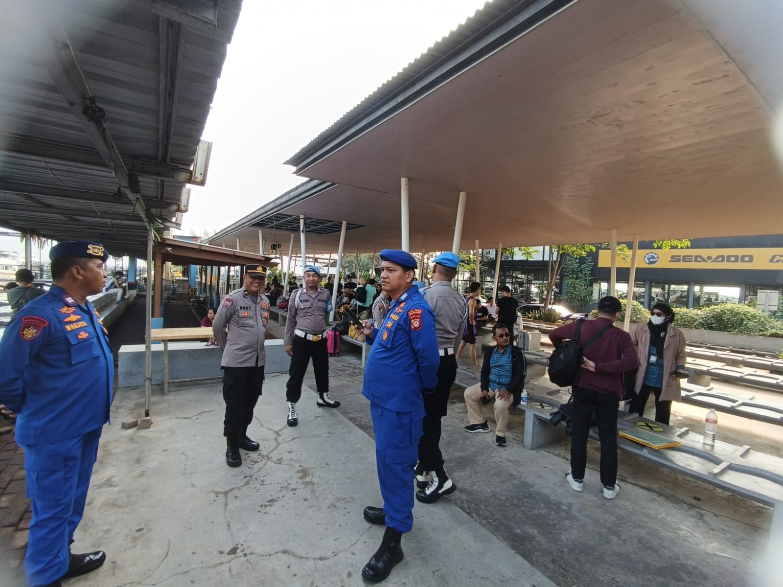 KS, JAKARTA – Polres Kepulauan Seribu melakukan pengamanan humanis pada keberangkatan kapal penumpang yang menuju Kepulauan Seribu melalui Dermaga 16 dan 17 Marina Ancol.