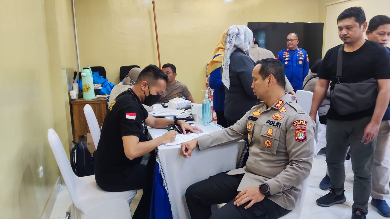 KS, JAKARTA – Polres Kepulauan Seribu menyelenggarakan kegiatan Donor Darah Bakti Kesehatan dalam rangka memperingati Hari Bhayangkara yang ke-77. Acara ini berlangsung di Aula Wicaksana Laghawa Polres Kepulauan Seribu dan diikuti oleh sebanyak 102 anggota Polres Kepulauan Seribu beserta Bhayangkari.