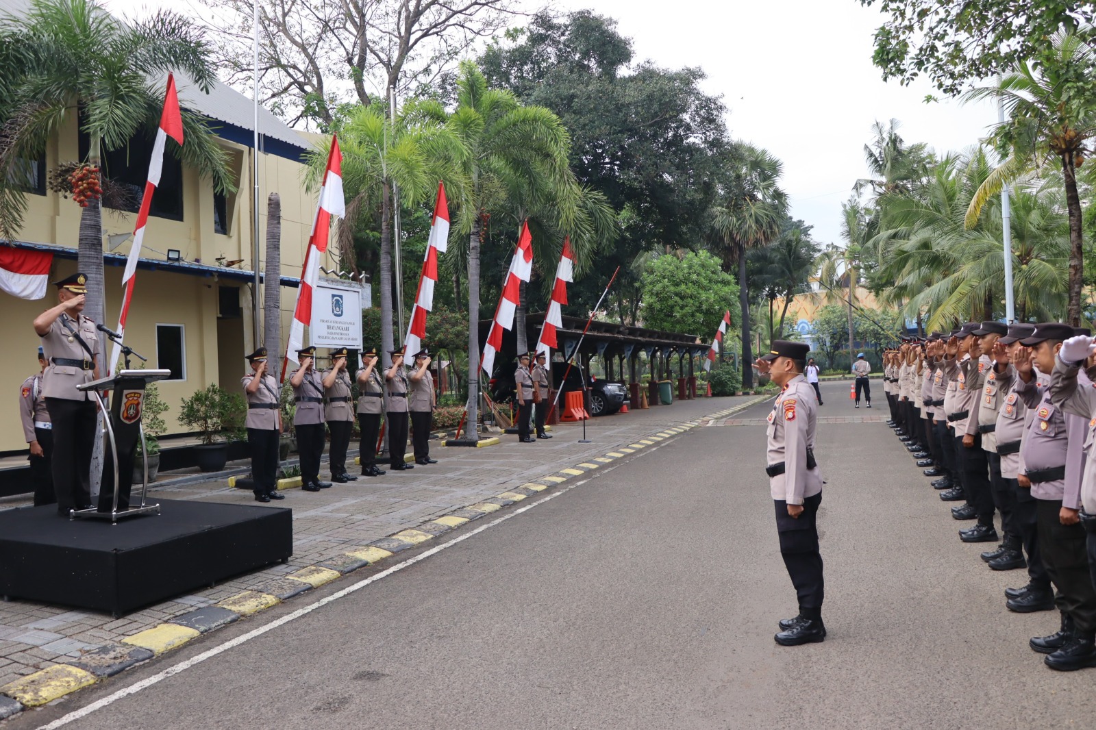 Upacara dipimpin langsung oleh Wakapolres Kepulauan Seribu, Kompol Zaroki Saputra, S.H., M.H., dan diikuti oleh seluruh personel Polres Kepulauan Seribu dengan penuh khidmat.