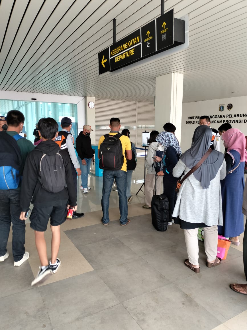 Ipda Iyus selaku perwira pengendali dari Polres Kepulauan Seribu mengatakan bahwa hari ini tercatat 406 penumpang kapal yang terdiri dari warga asli Kepulauan Seribu maupun wisatawan menyebrang ke Kepulauan Seribu melalui dermaga Kali Adem, Minggu (25/12/2022)