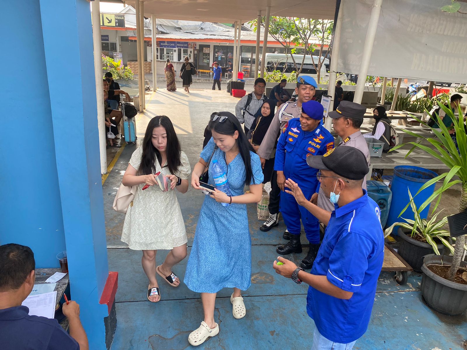 Dalam upaya meningkatkan keamanan di dermaga, petugas kepolisian yang dipimpin oleh AKP Bambang Agus melakukan pemeriksaan terhadap barang bawaan wisatawan sebelum mereka memasuki kapal.