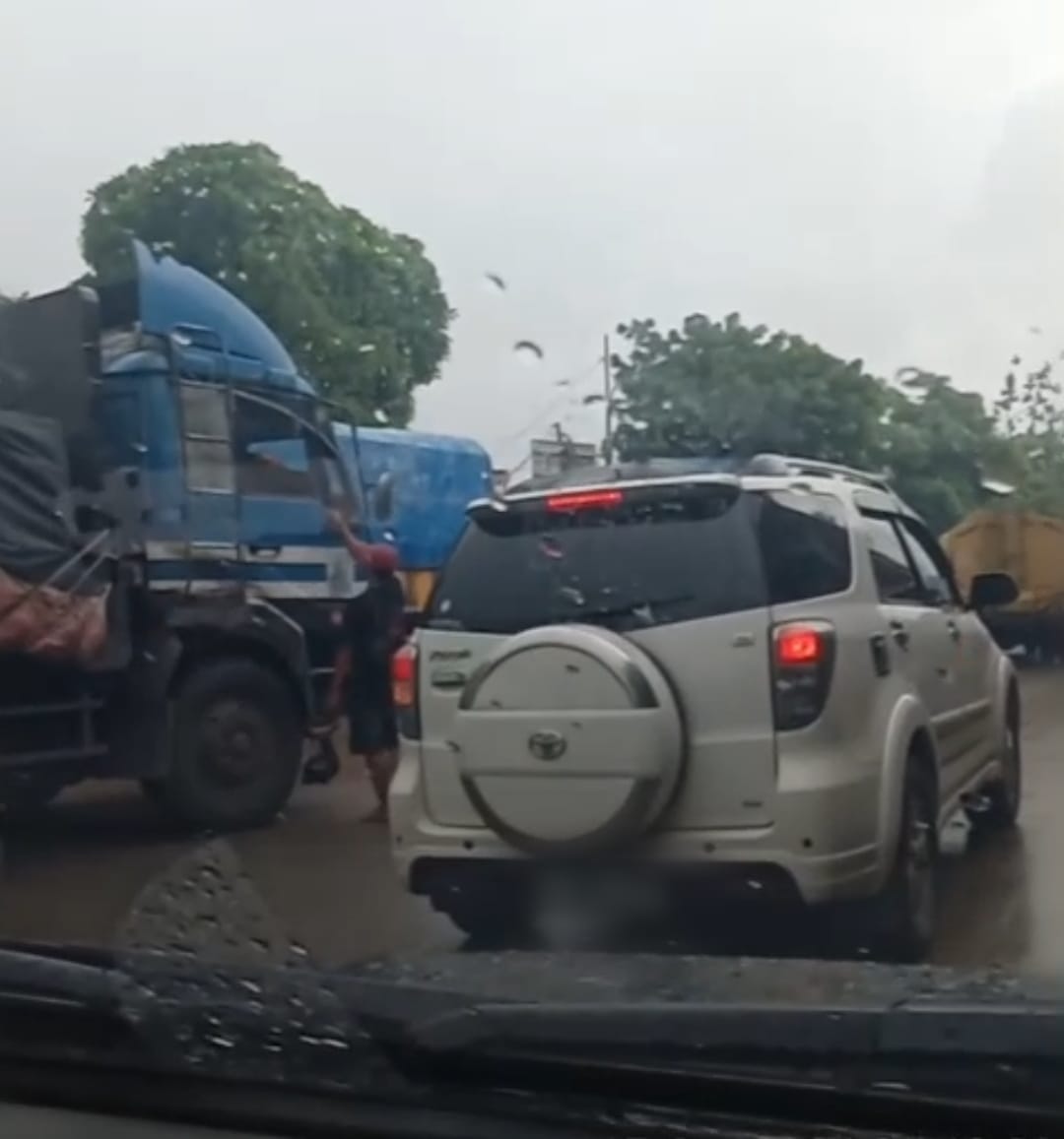Dalam video berdurasi sekitar 44 detik yang beredar di media sosial, terlihat seorang pak ogah mendekati sebuah mobil truk angkutan barang dan diduga menerima sejumlah uang dari pengemudi kendaraan tersebut.