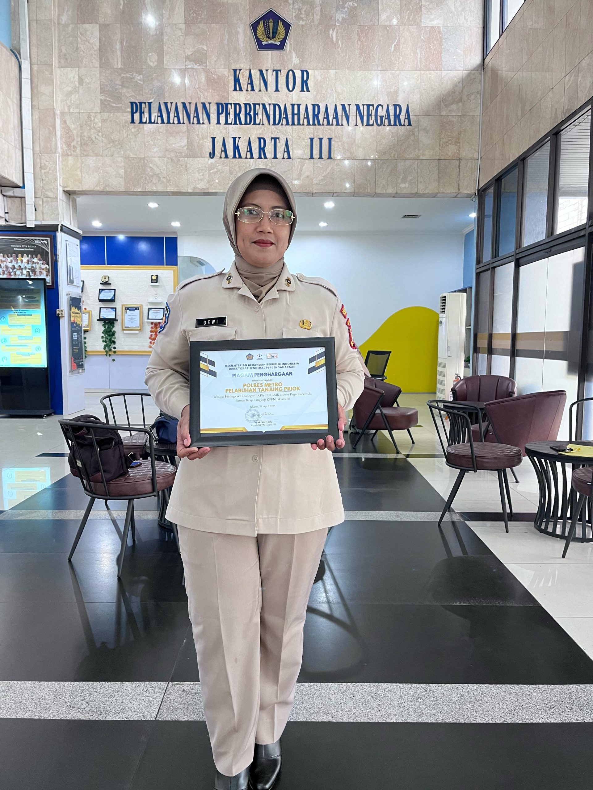 Penyerahan piagam penghargaan dilakukan oleh Kepala KPPN Jakarta III, Bapak Syakran Rudi, yang diwakili oleh Pejabat Fungsional Pembina Teknis Perbendaharaan Negara jenjang Penyelia, Bapak Fernando Oktario Situmorang. Piagam tersebut secara resmi diterima oleh PENDA Dewi Suarsih sebagai perwakilan dari Polres Pelabuhan Tanjung Priok.