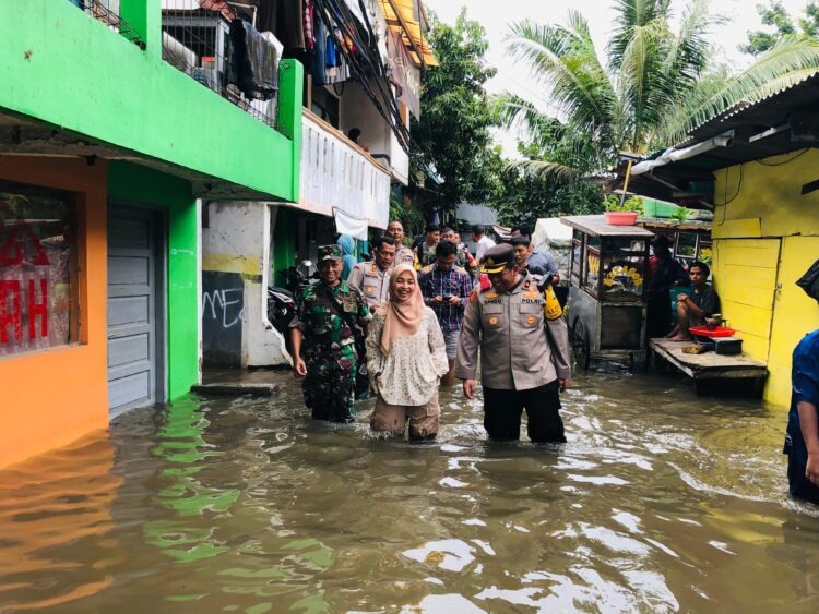 Dengan tidak menunda lagi, Fernando bersama Camat Cilincing dan Danramil menerobos genangan air guna membantu mendampingi pergeseran logistik Pemilu.