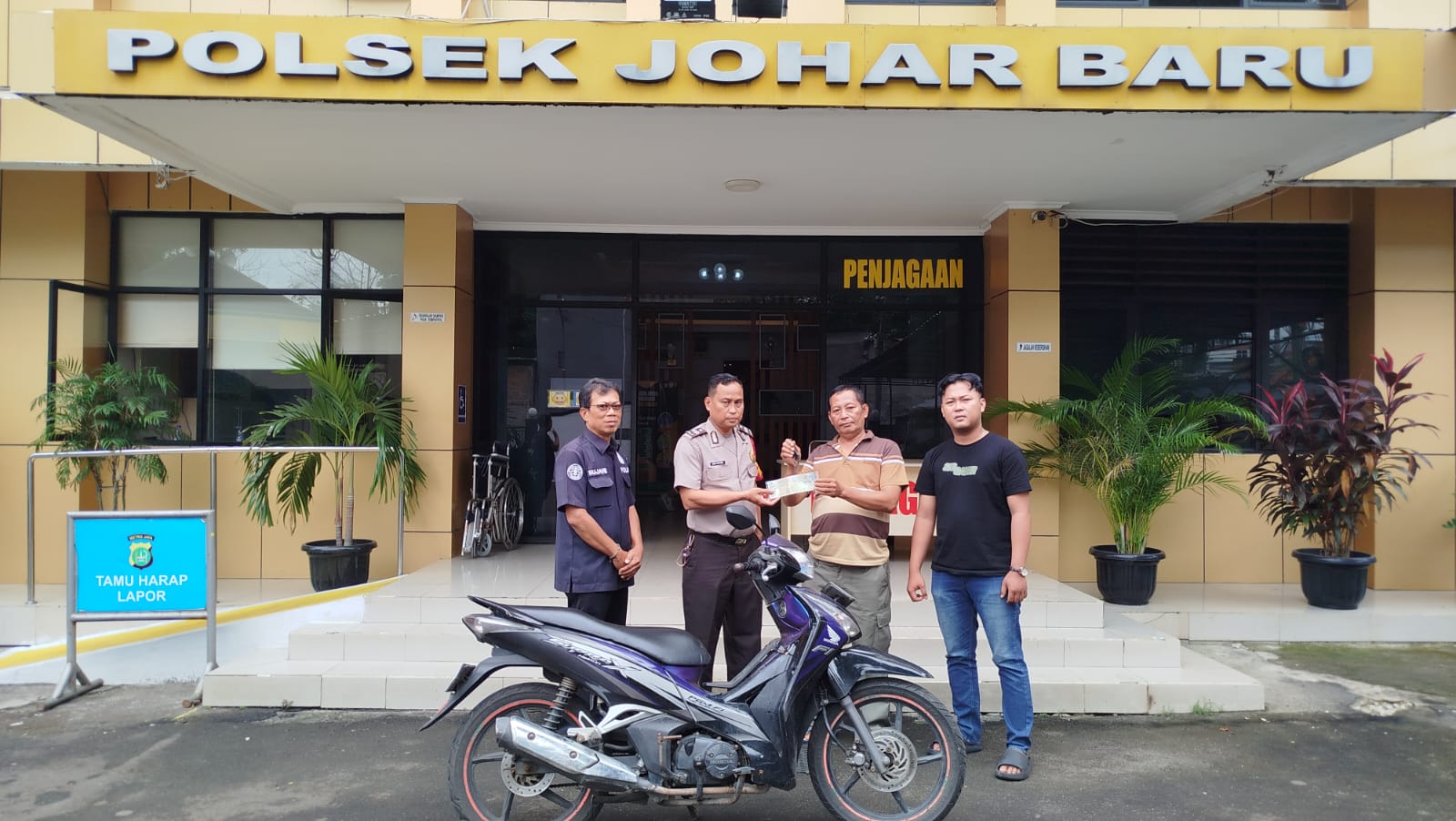 “Saya mengucapkan terima kasih kepada semua jajaran Polsek Johar Baru yang telah menemukan kembali motor saya yang hilang, semoga kedepannya Polsek Johar Baru semakin jaya dan semakin dicintai oleh masyarakat, sekali lagi saya mengucapkan terima kasih, ” ujarnya.