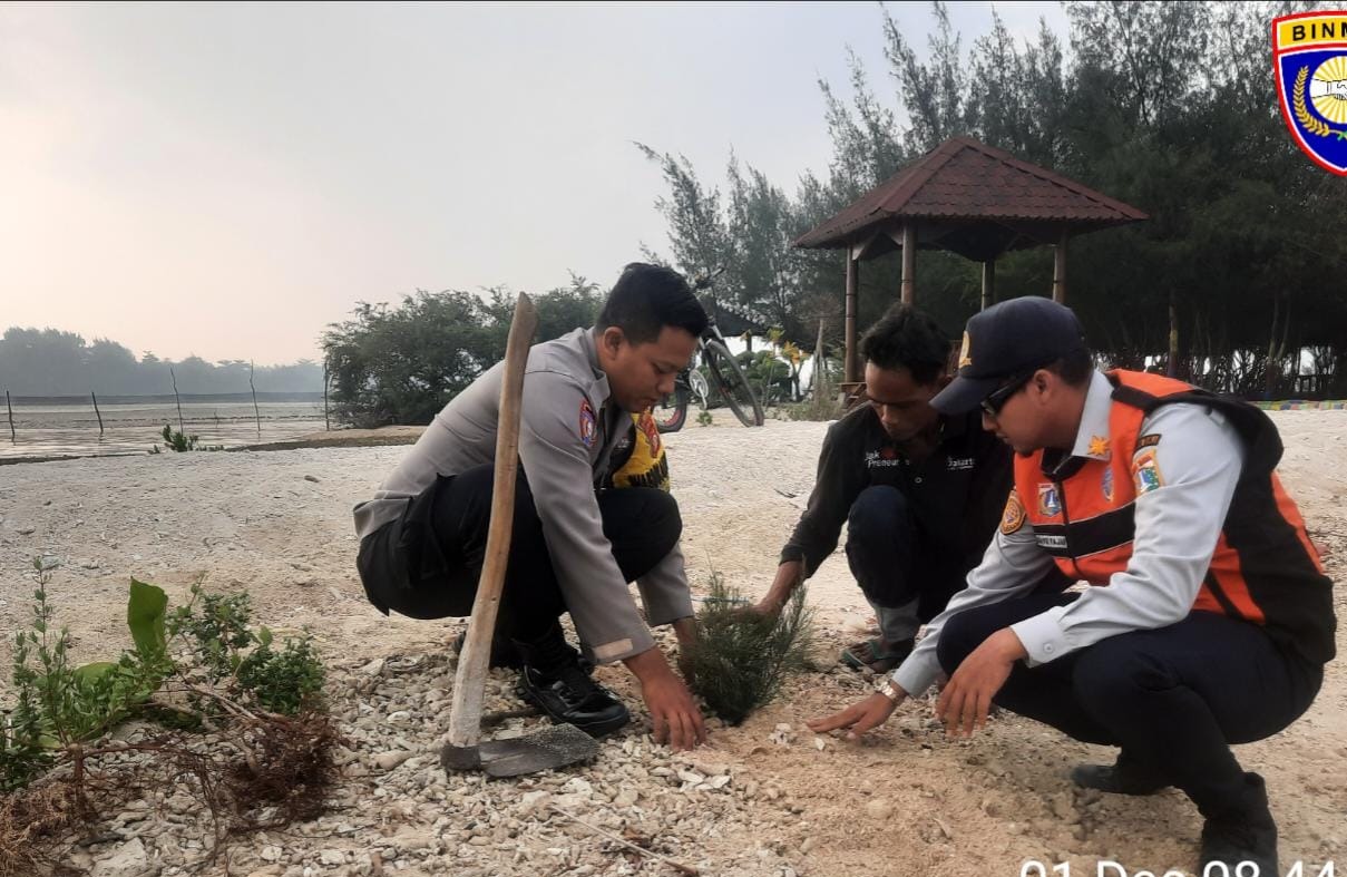 Dalam kegiatan ini, petugas dari Polsek Kepulauan Seribu Selatan turut berperan aktif dalam menanam pohon secara bersama-sama. Semangat kebersamaan terpancar dari upaya kolaboratif mereka untuk menjaga lingkungan demi kebaikan bersama.